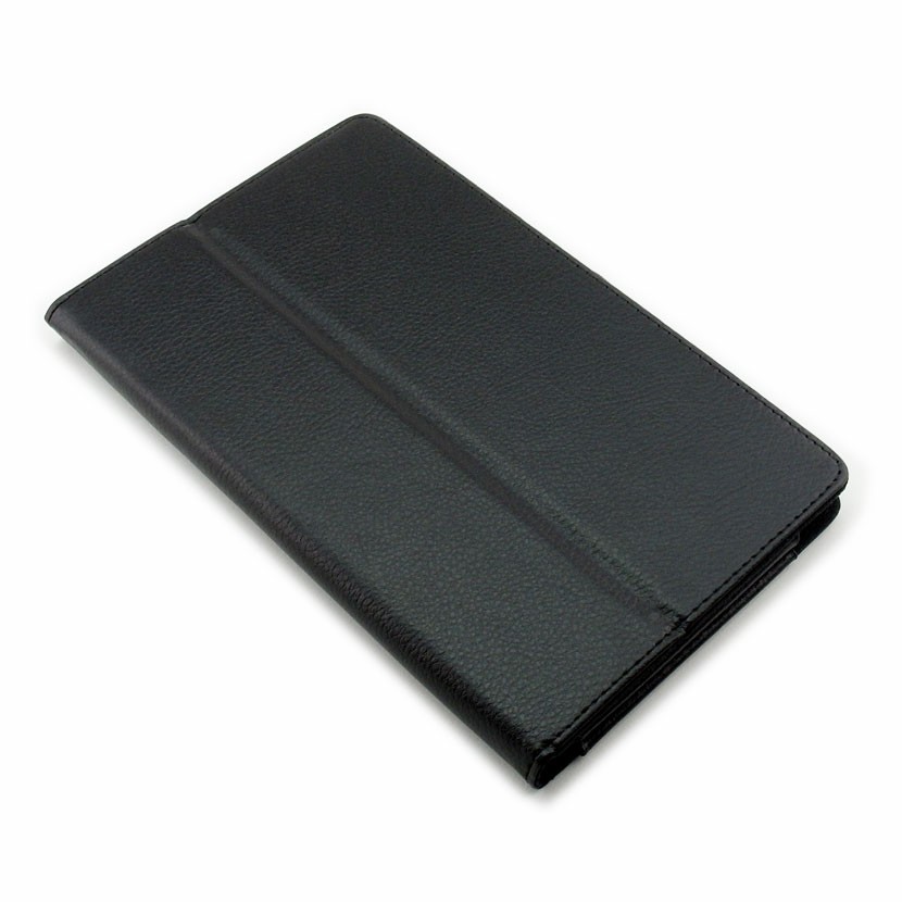 Pokrowiec na tablet wykonany jest z wysokiej jakości skóry ekologicznej w czarnym kolorze. Brzegi obszyte są czarną nitką. W środku etui jest wyścielone miękkim materiałem, dodatkowo chroniącym ekran przed zarysowaniem. Całość prezentuje się niezwykle nowocześnie. Dodatkowo pokrowiec ma wszyty elastyczny uchwyt na rysik.