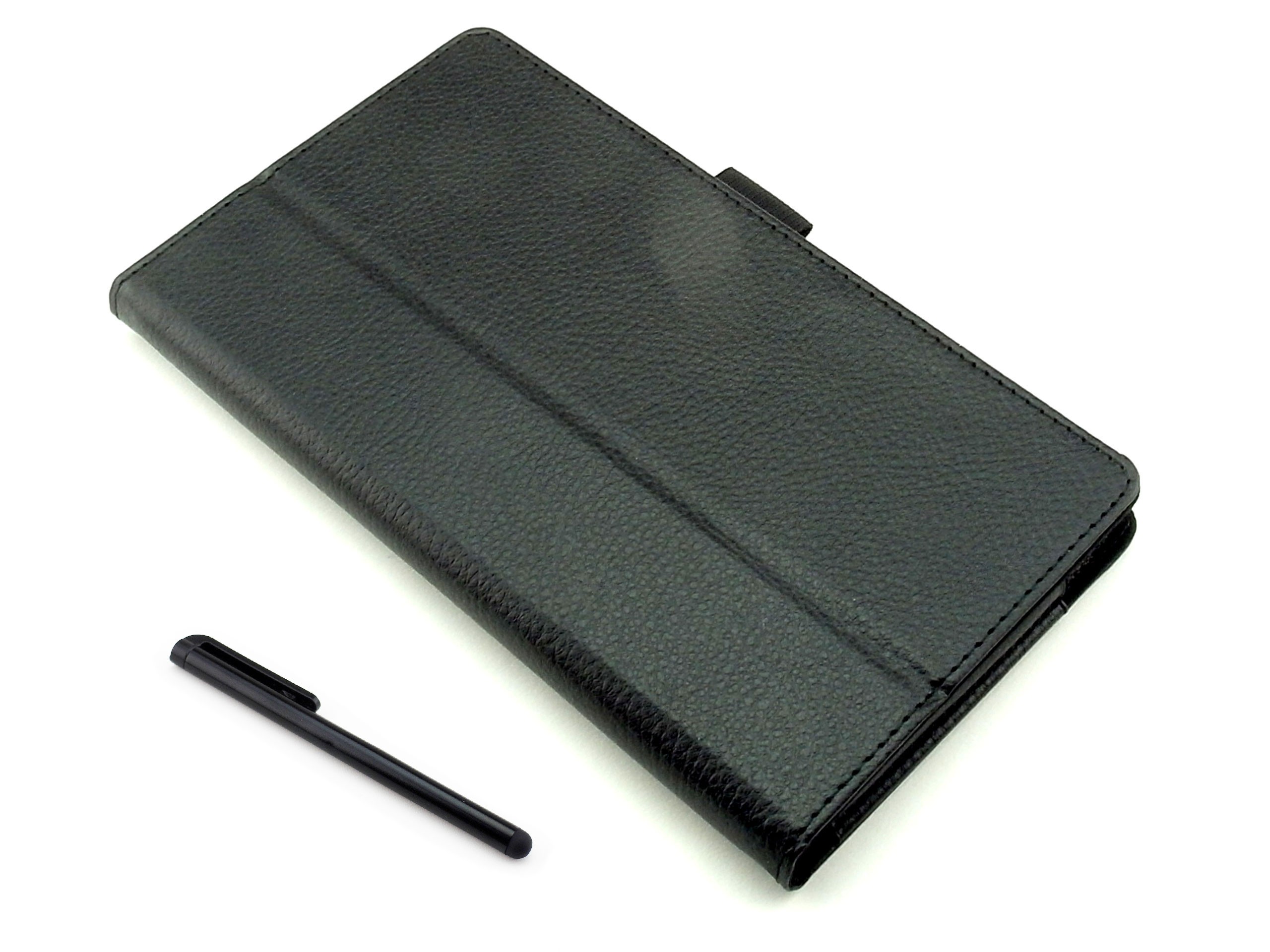 Prezentowane przez nas etui jest bardzo praktyczne, a także bardzo dobrej jakości. Wykonane zostało z eko-skóry w czarnym kolorze. Brzegi wykończone są czarna nitką. Wnętrze etui wyścielone jest miękkim materiałem typu zamsz, który dodatkowo chroni ekran przed zarysowaniem. Ekologiczna skóra prezentuje się elegancko i nadaje oryginalności etui. Ponad to pokrowiec wyposażony jest w elastyczny uchwyt na rysik.