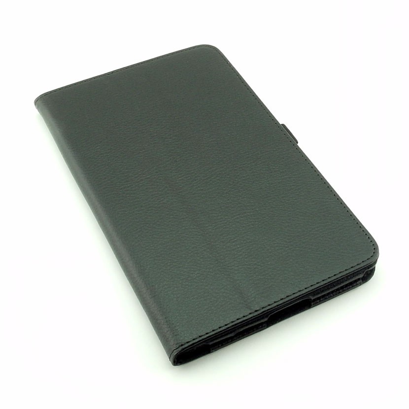 Pokrowiec na tablet wykonany jest z wysokiej jakości skóry ekologicznej w czarnym kolorze. Brzegi wykończone są czarną nitką. W środku etui jest wyścielone miękkim materiałem, chroniącym ekran przed zarysowaniem. Całość prezentuje się bardzo elegancko. Dodatkowo masz do dyspozycji elastyczny uchwyt na rysik (spójrz na zdjęcie powyżej).