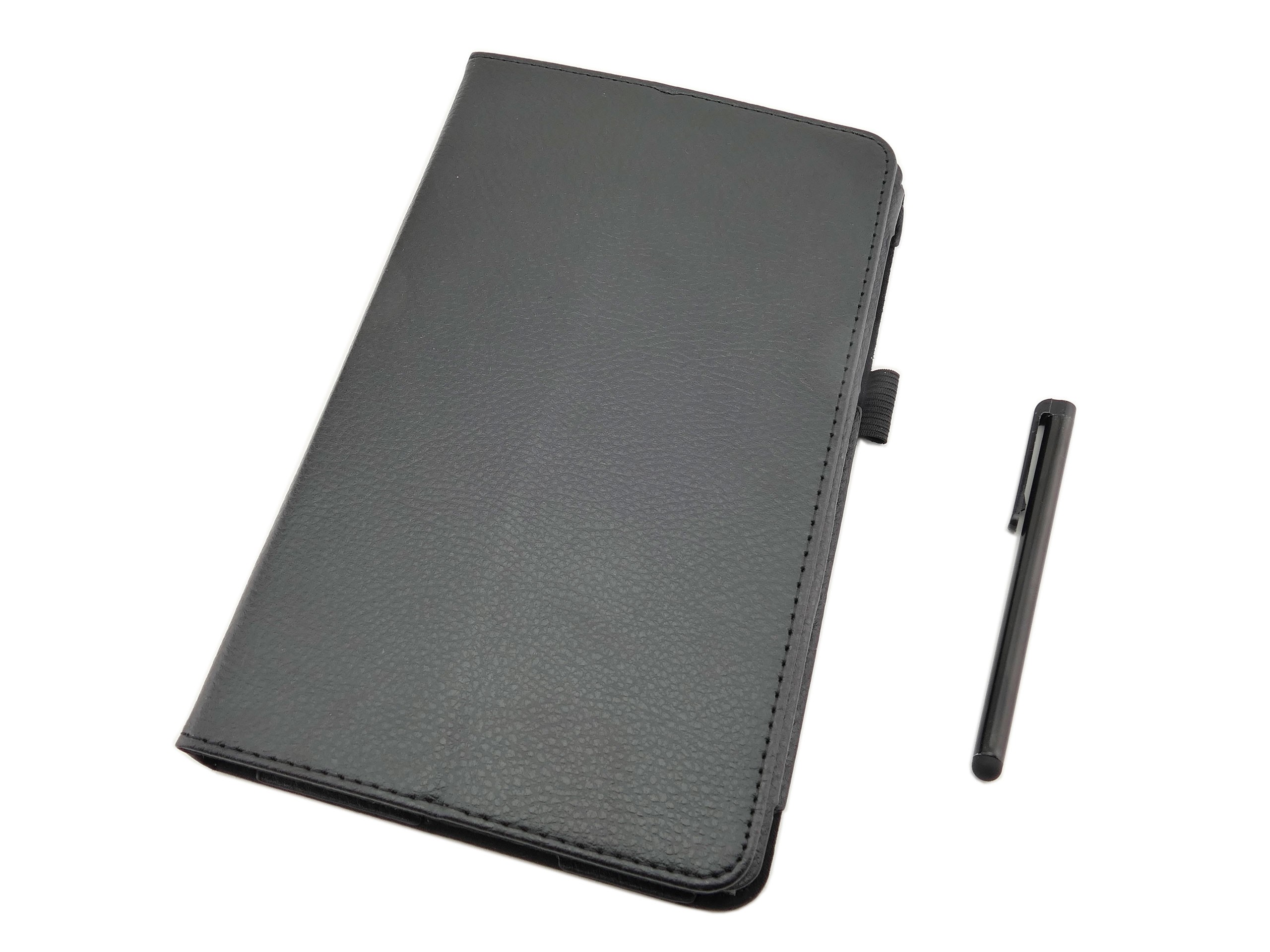 Oferowane etui jest jednocześnie eleganckie i funkcjonalne. Pokrowiec wykonany jest z wysokiej jakości skóry ekologicznej w czarnym kolorze. Brzegi obszyte są czarną nitką. Wnętrze etui jest wyścielone miękkim materiałem, chroniącym ekran przed zarysowaniem. Etui ma wszyty na zewnatrz elastyczny uchwyt na rysik.