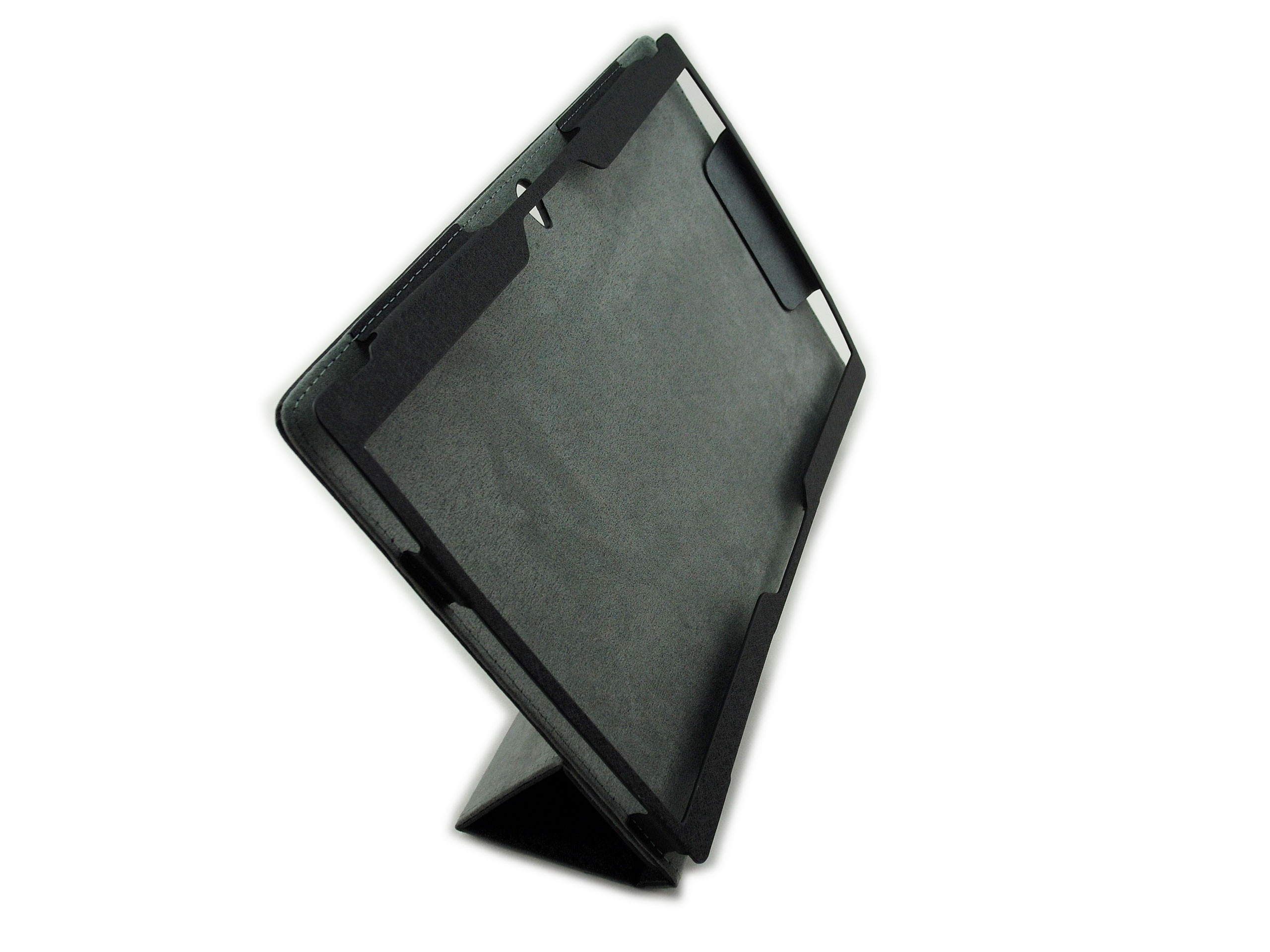Etui posiada łamaną okładkę, która pełni jednocześnie funkcję podstawki. Dzięki temu rozwiązaniu, możesz ustawić urządzenie pod kątem, co pozwoli wygodnie oglądać filmy lub czytać e-booki. W tylnej ściance pokrowca znajduje się otwór na kamerę oraz otwory na głośniki.