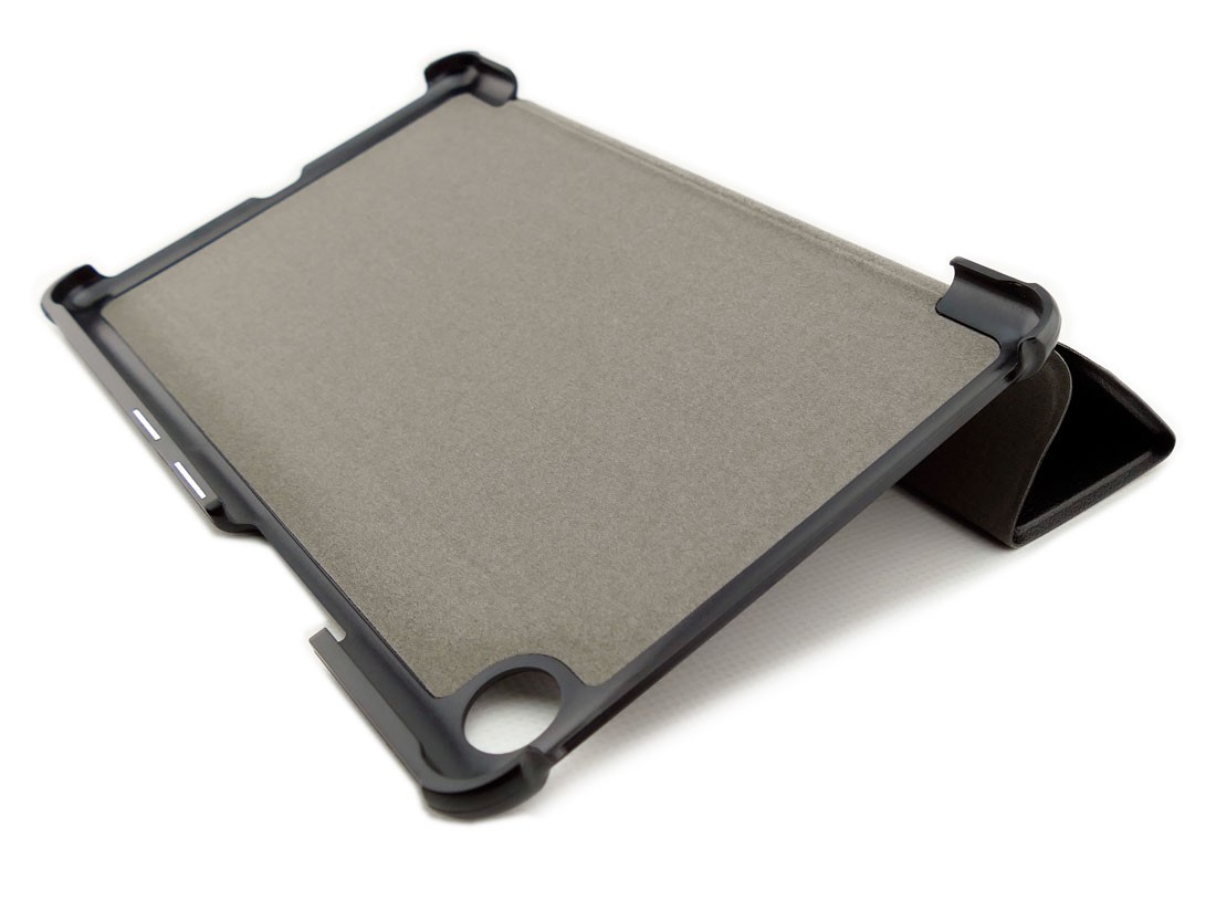 Etui ma charakterystyczną łamaną okładkę, która pełni także funkcję zintegrowanej podstawki. Dzięki takiemu rozwiązaniu, w każdej chwili możesz ustawić urządzenie pod kątem, co pozwoli wygodnie oglądać filmy lub czytać e-booki.