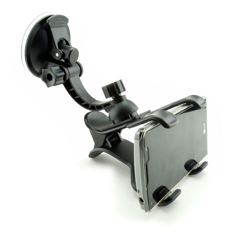 Przedstawiamy poręczny uniwersalny uchwyt na telefon lub tablet. Uchwyt montuje się na szybę za pomocą przyssawki mocującej. Montaż uchwytu do szyby jest bardzo prosty, a równocześnie pewny, ponieważ przyssawka jest sporych rozmiarów. Tablet nie będzie przemieszczał się w uchwycie podczas obrotu, dzięki specjalnym wypustkom na szczękach. Szczęki dostosowują się do urządzeń o maksymalnej szerokości 13 cm.