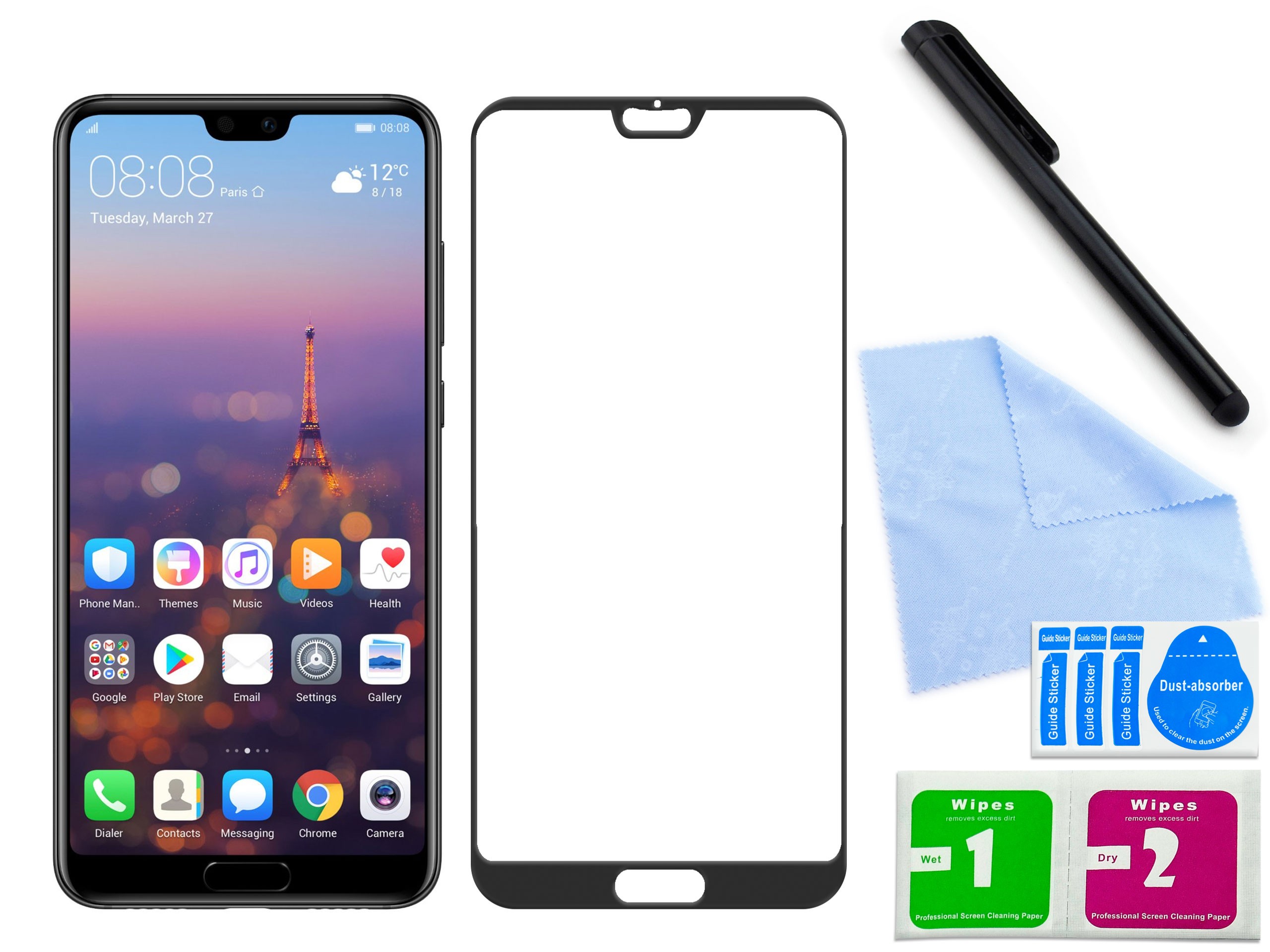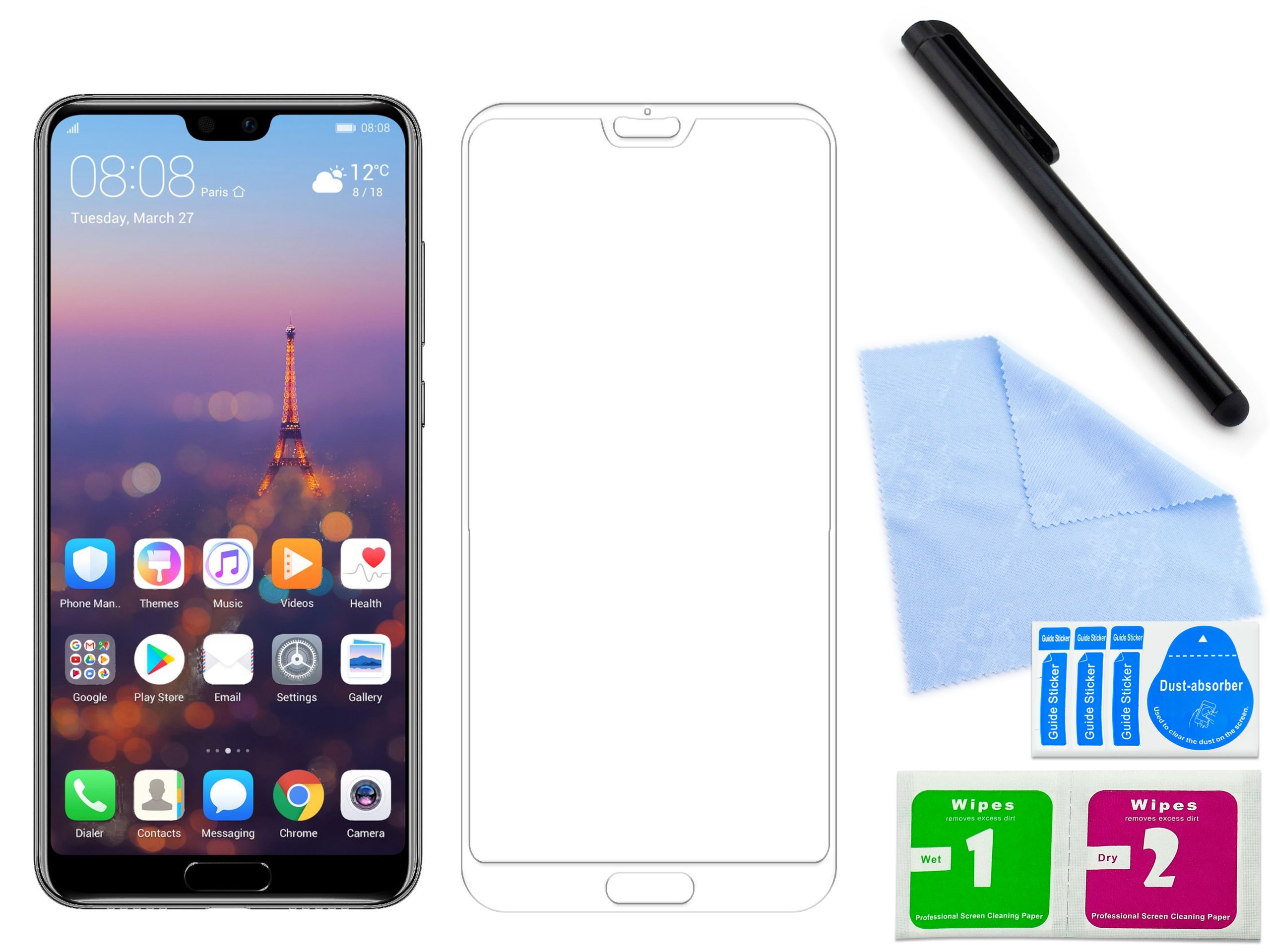 11. Jest dokładnie wykonane - idealnie dopasowane do płaskiej części ekranu (dotyku) Twojego telefonu. Jest dedykowane do telefonu Huawei P20 Pro, co oznacza idealne spasowanie wymiarami i ewentualnymi otworami, co do milimetra.
