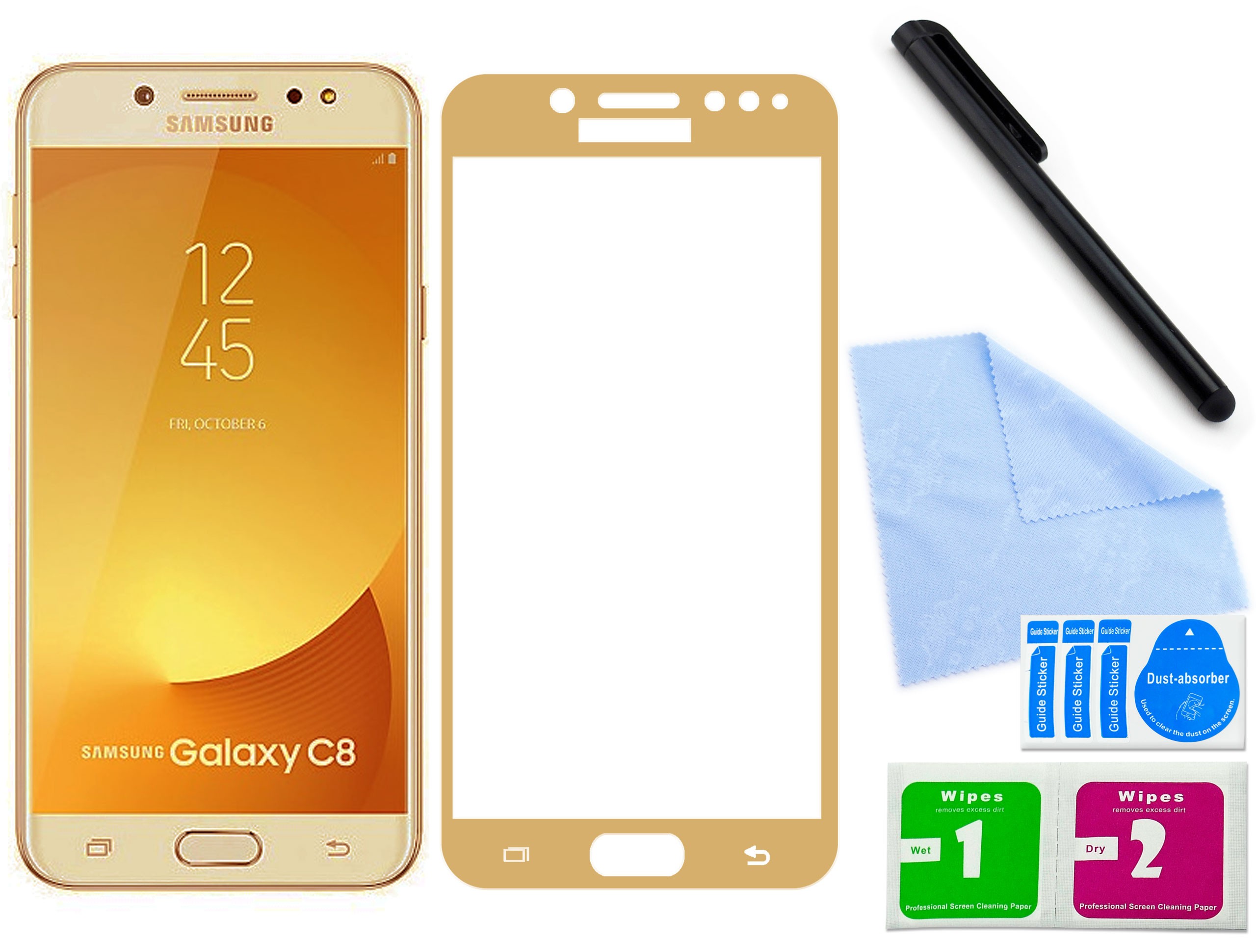 - Jest precyzyjnie wykonane - znakomicie pasujące do płaskiej części ekranu (dotyku) Twojego telefonu. Jest odpowiednie do telefonu Samsung Galaxy C8 (SM-C7100), co oznacza idealne dopasowanie wymiarami i ewentualnymi otworami, do milimetra.