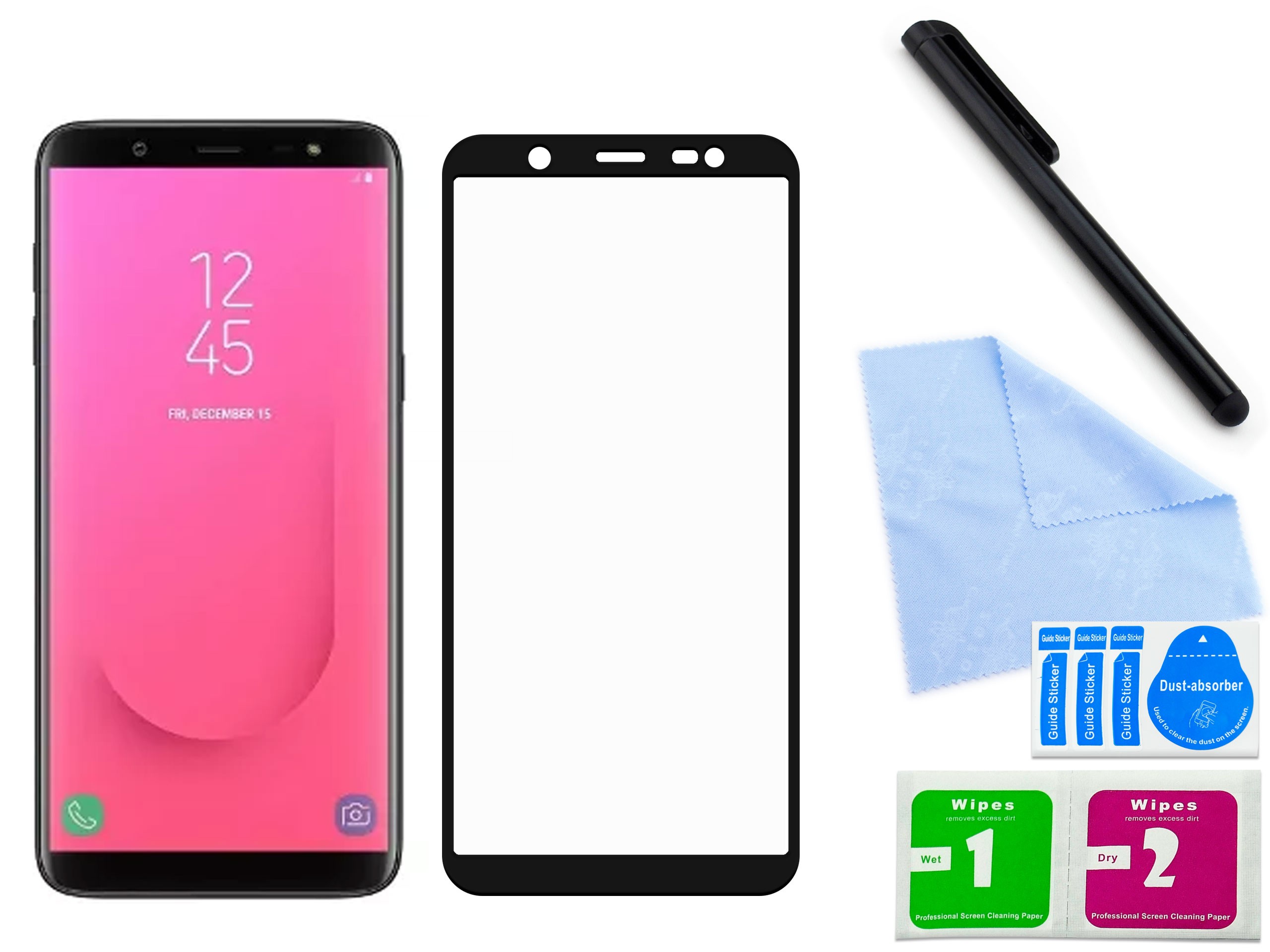 - Jest dokładnie wykonane - znakomicie pasujące do płaskiej części ekranu (dotyku) Twojego telefonu. Jest przeznaczone do telefonu Samsung Galaxy J8 2018 , co oznacza idealne spasowanie wymiarami i ewentualnymi otworami, co do milimetra.